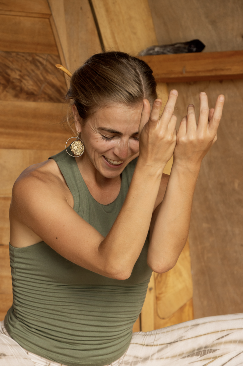 With a foundation in classical dance as a former principal ballerina, and a deep commitment to embodied healing, she weaves together practices from yoga, somatic therapy, plant medicine integration, traditional Amazonian healing, and embodied vocal coaching. She holds space in ceremonial contexts including Kambo, hapé, cacao, and song and dance circles.